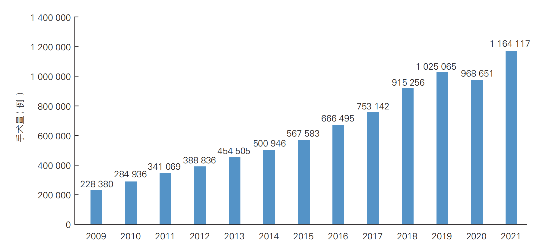 2009~2021 年中国经皮冠状动脉介入治疗手术量